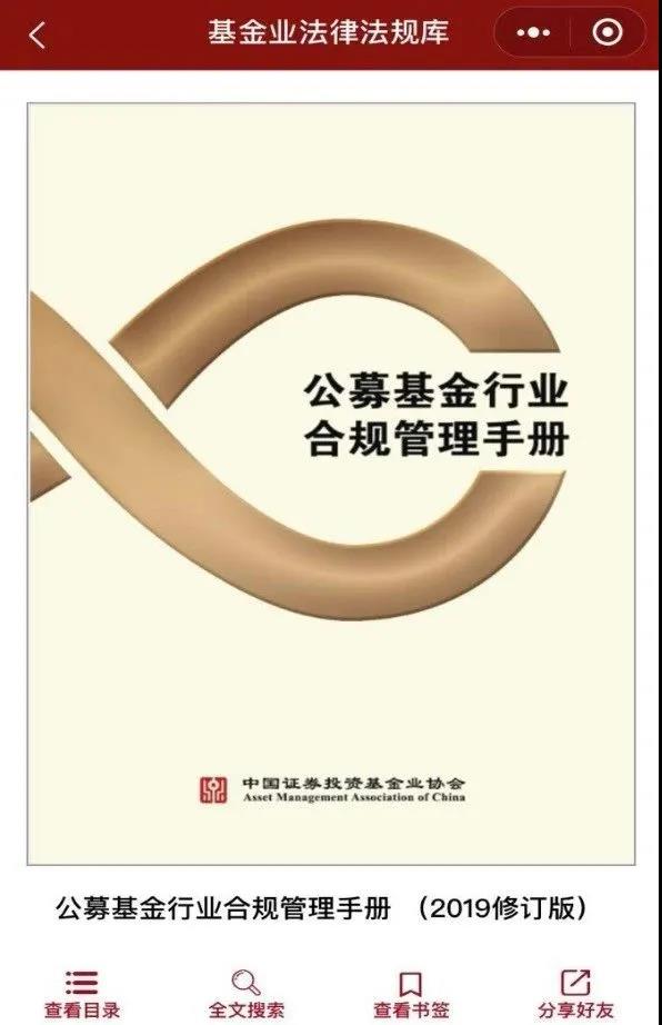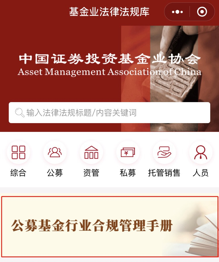 協(xié)會《公募基金行業(yè)合規(guī)管理手冊》在“中國基金業(yè)法律法規(guī)庫”小程序 中正式上線
